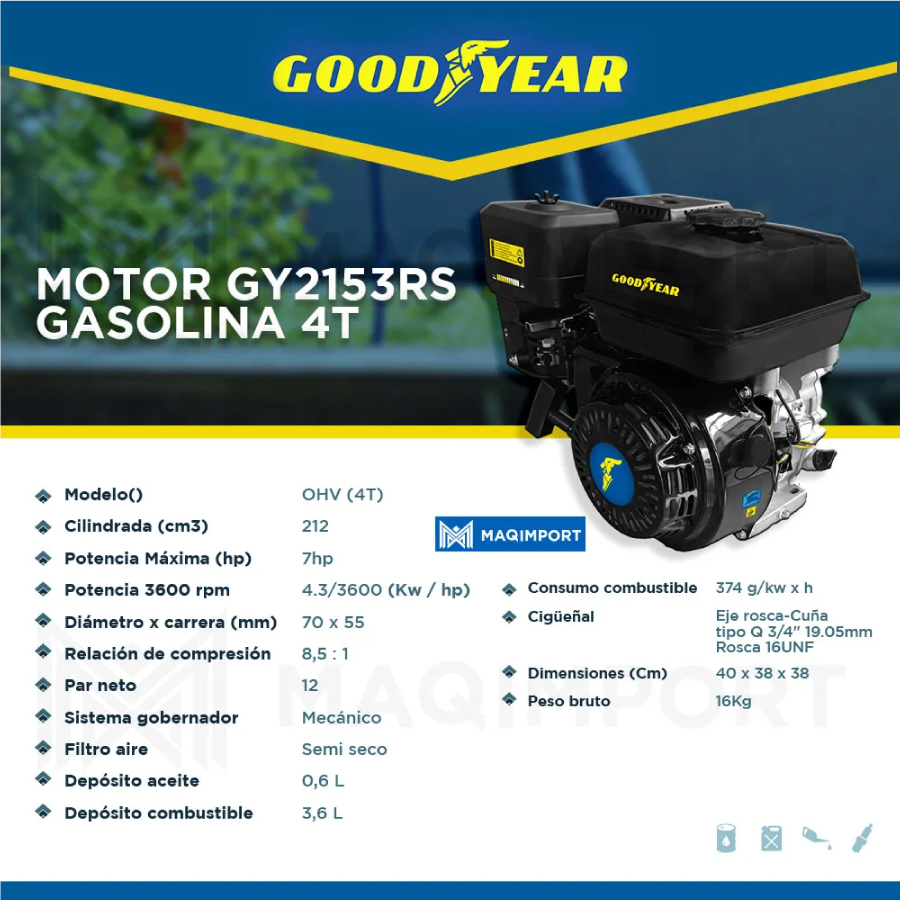 Motor GY2153RS GOODYEAR 7hp Gasolina 3600rpm