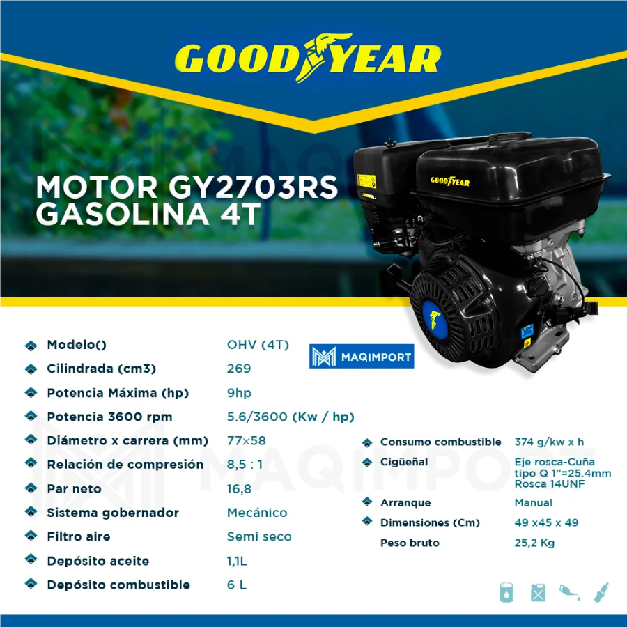 Motor GY2703RS GOODYEAR 9hp Gasolina 3600 rpm