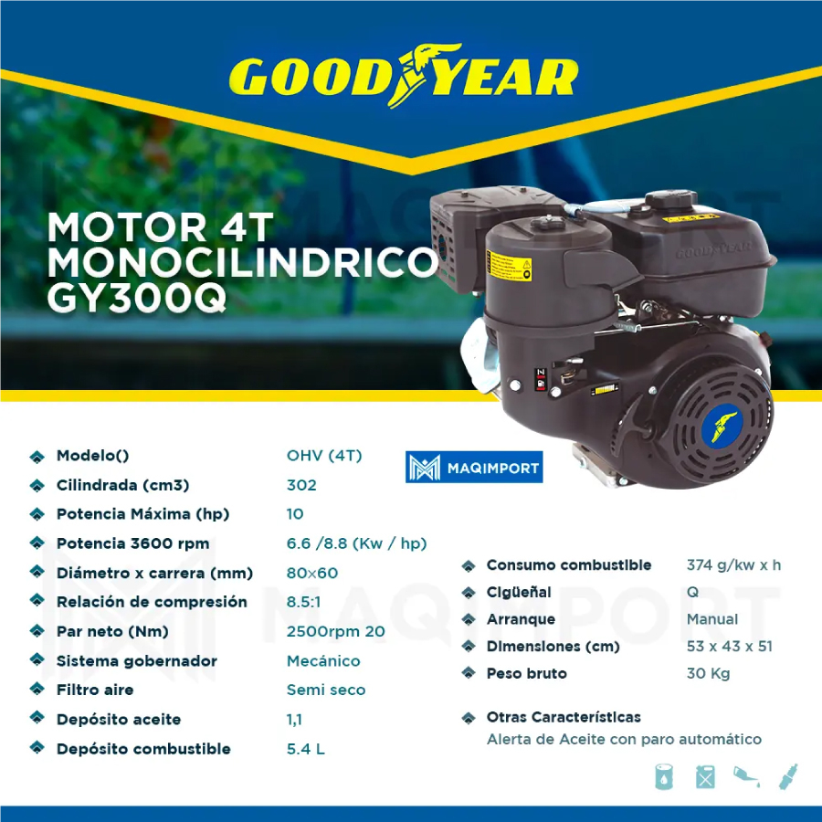 Motor GY300Q GOODYEAR 10hp Gasolina Con Filtro CICLON