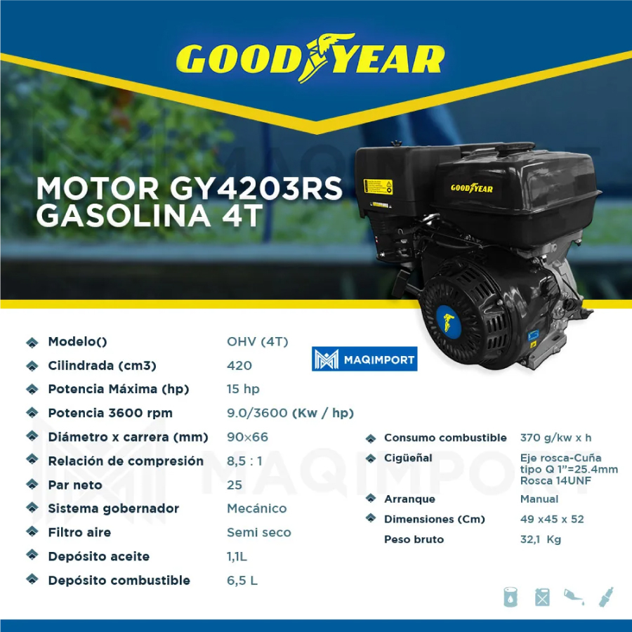 Motor GY4203RS GOODYEAR 15hp Gasolina 3600rpm