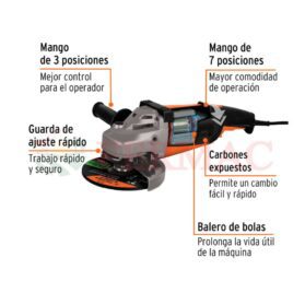 Esmeriladora angular 7″, 2200W, Truper pro