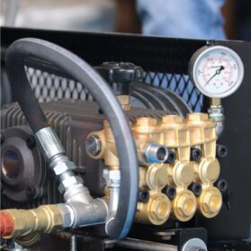 Hidrolavadora Danau Weg 5.200 PSI, robusto equipo de alta presión con motor eléctrico WEG de 12 ó 15 HP y bomba marca Danau, arrancador electro-magnético, refrigeración de motor por aire forzado, accionamiento directo con acople de conexión de salida de agua QUICK CONECT de 3/8″, Altísima Resistencia y Presión.